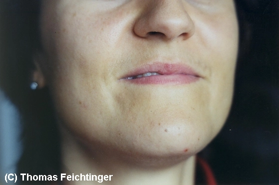 Bild grünliche Farbe um den Mund